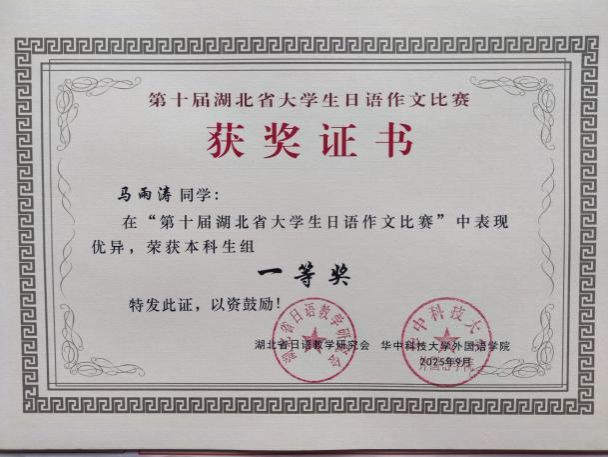 日语系学生在湖北省大学生日语作文比赛中斩获佳绩