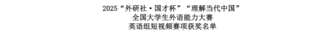 (bat365在线中国登录入口通讯员 李丹阳)12月7日,2025年“外研社·国才杯”全国大学生外语能力大赛英语组短视频赛项圆满落幕,我校选送的作品从全国1100余所院校的17778部参赛作品中脱颖而出,荣获国赛银奖。